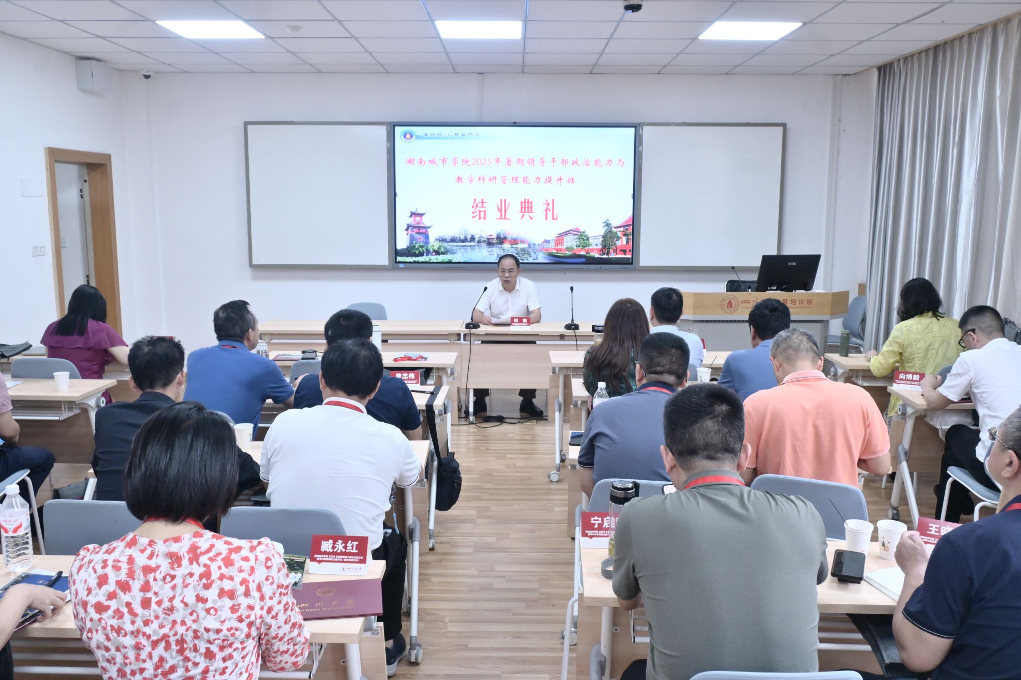 本网讯为进一步强化学校领导干部的政治修养,全面提升教学科研管理能力,7月14日至19日,我校在四川大学举办2025年暑期领导干部政治能力与教学科研管理能力提升班,校领导何振、谭献良、徐姝、孙倩、吕贤军及部分职能部门负责人和二级学院院长、副院长共40余人参加培训。此次培训历时6天,采用专家讲座、现场教学、学习研讨等多元化形式,为领导干部“充电赋能”。