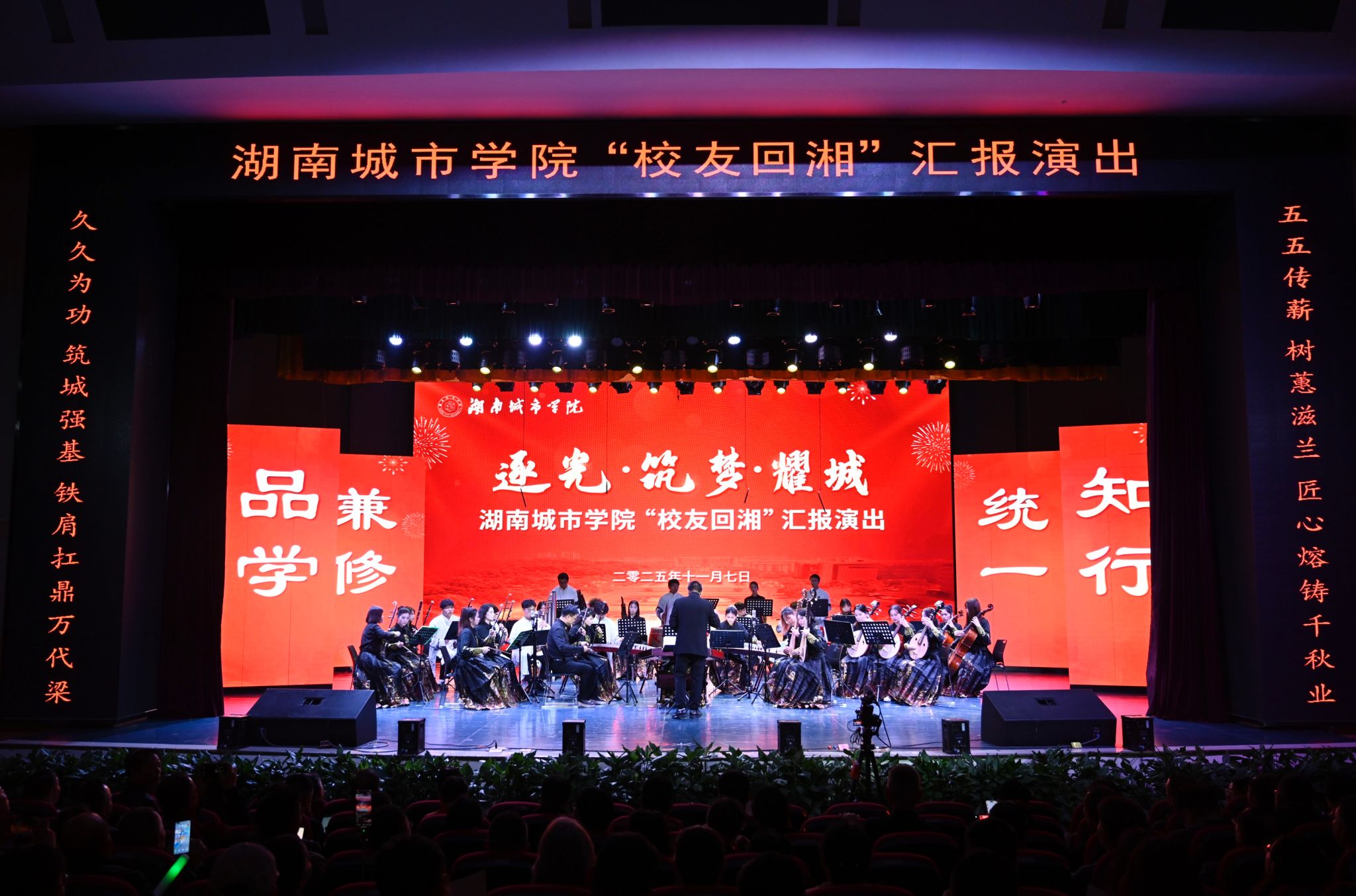 本网讯(通讯员 周贵湘 摄影 程强)11月7日晚,“逐光•筑梦•耀城”米兰平台“校友回湘”汇报演出在音乐厅精彩开演,全体在家校领导、嘉宾、校友代表及师生400余人齐聚一堂,共赴这场融合爱校情怀与艺术魅力的视觉盛宴。