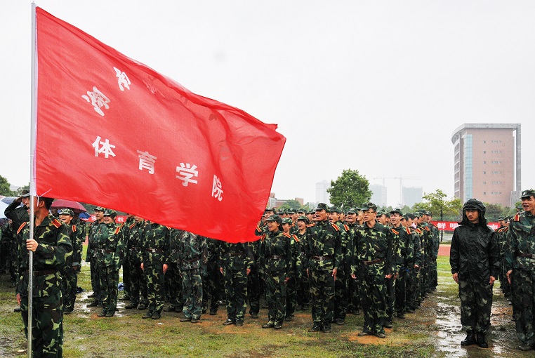 伴随着庄严的国歌、校歌,五星红旗、校旗徐徐在操场上空升起。4000余名新生身着戎装,在大雨中巍然挺立,淋漓尽致地展现了新生们高扬的精神风貌和良好的纪律修养。