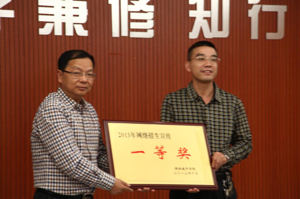李建华给受表彰的单位颁奖,并作重要讲话,对我校明年招生工作提出了4点要求:一是加大招生宣传的力度,特别是对外省的宣传力度,要利用一些全国性的媒体宣传学校,并充分利用外省的校友资源来帮助宣传学校。二是进一步提高招生工作质量,争取学校投档线要在今年基础上再提高3-5分,要研究制定完善招生政策,力争能招到音、体、美方面的特殊人才,在外省建立一批“优质生源基地”。三是进一步做好就业市场的预测研究,对今后几年一些专业的前景做好预判、查找数据,为学校开办新的专业提供决策依据。四是要求招生就业处对明年如果停办专科专业会带来哪些问题或影响做深入的调查和研究。