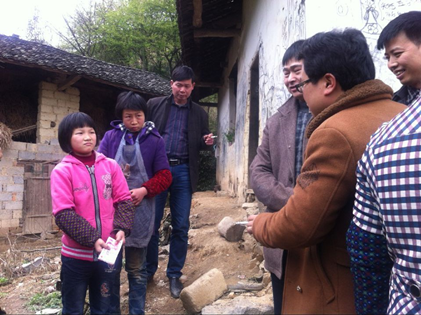 回程路上,全体志愿者步行上山来到乐安中心完小的特困学生家,看望并慰问了这个特困家庭。(郑学达)