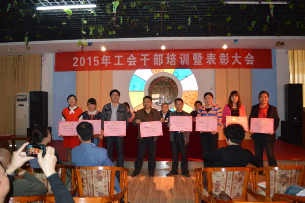 工会女工委副主任石清丽就提案工作作了培训,并宣读了省、市、学校的各级表彰决定:化学与环境工程学院分工会获得省教育工会2014年度直属基层工会“模范教职工小家”荣誉称号;体育学院李志宏荣获2014年度益阳市芙蓉百岗明星城市管理学院分工会等8个单位为“工会工作先进集体”;文学院分工会等4个单位为“特色工会活动”;城市管理学院学生工作办公室等5个单位为“巾帼建功示范岗”;党政办公室6个单位为“民主管理工作先进单位”;美术与艺术设计学院4个单位为“帮扶工作先进单位”;周拥军等177人为“工会工作积极分子”;唐葭等10人为“巾帼建功标兵”;管红兵等3人为“优秀女职工工作者”;黄金莲等9人为“孝顺儿媳”。