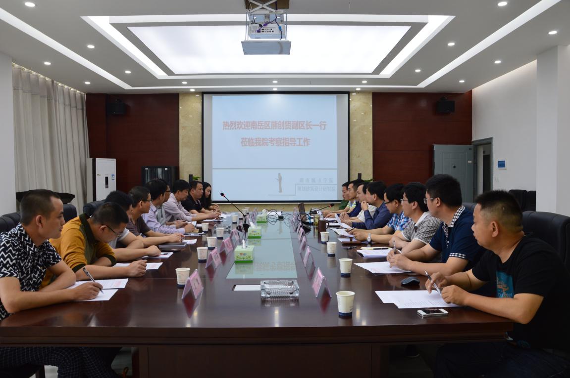 (本网讯) 429,衡阳市南岳区人民政府副区长、我校挂职干部熊创贤率该区祝融街道办、区住建局、南岳城市建设投资有限公司、区规划局、南岳建筑设计院来校规划建筑设计研究院进行考察交流。设计院负责人及相关职能人员参加考察交流会。
