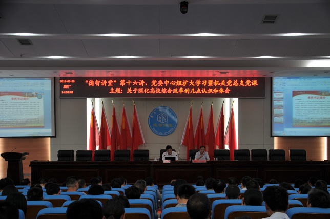 (本网讯)630日下午,学校在逸夫图书馆报告厅举行德智讲堂第16讲暨党委中心组“三严三实”扩大学习活动,邀请湖南师范大学党委书记、博士生导 师李民 教授作题为《关于深化高校综合改革的几点认识和体会》的专题报告。讲堂由学校党委书记李建华主持,在家的校领导,在职在岗副科以上干部,机关全体党员参加。
