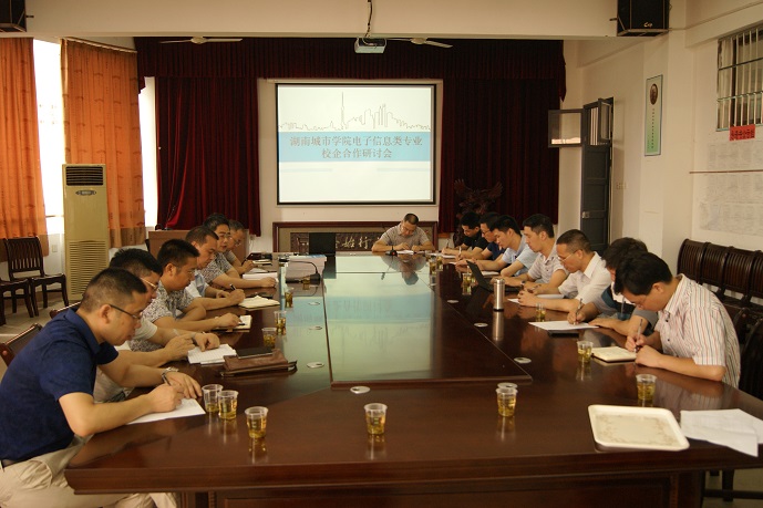 (本网讯)7月2日上午,米兰平台电子信息类专业建设研讨会暨电子信息类专业校企合作研讨会在电信楼三楼会议室举行。湖南科瑞特科技股份有限公司总经理、湖南科瑞迪教育发展有限公司执行董事张宏立,学校教务处、通信与电子工程学院院相关负责人以及部分教研室主任、教学办主任、办公室主任参加了会议。研讨会主要就电子信息类专业的专业建设、校企合作深入开展及实验班的开办、就业质量良性循环的形成、社会服务能力的提升等内容进行了研讨和交流。