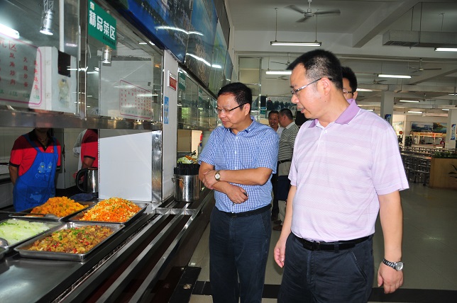 检查组先后来到学生第二食堂、第三食堂、第一食堂、学生公寓楼检查工作。在学生食堂,李建华、李建奇听取各餐厅负责人的工作汇报,仔细查看就餐大厅、售饭窗口的准备和环境卫生等情况,详细了解饭菜的品种和价格。