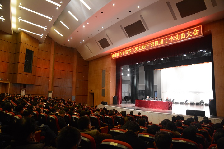 (本网讯) 12 月15 下午,我校第五轮处级干部换届工作动员大会在音乐厅举行。在家的校领导,现职正科级以上干部,副高以上职称人员,博士,省市区人大代表、政协委员,民主党派负责人共300余人出席,会议由校长李建奇主持。