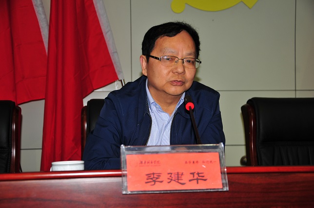 校长李建奇代表学校全体师生员工,热烈欢迎党委书记罗成翼同志到任。同时,感谢李建华同志对城市学院发展做出的巨大贡献。