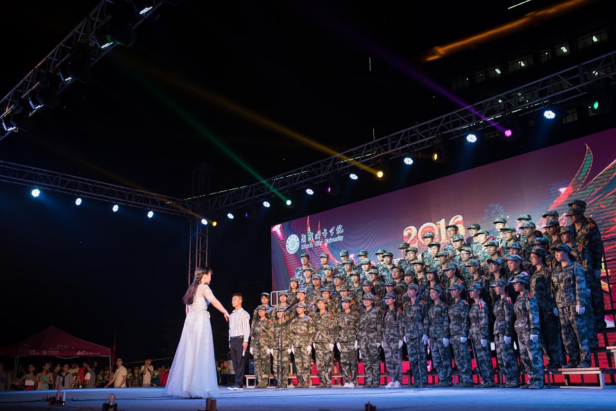 (本网讯) 925日晚730,“迎新聚梦,扬帆启航”迎新晚会暨校歌合唱决赛在兴城广场隆重举行。校领导罗成翼、何振、雷存喜、谭献良以及各机关处室负责人与2016级新生共同观看了晚会。