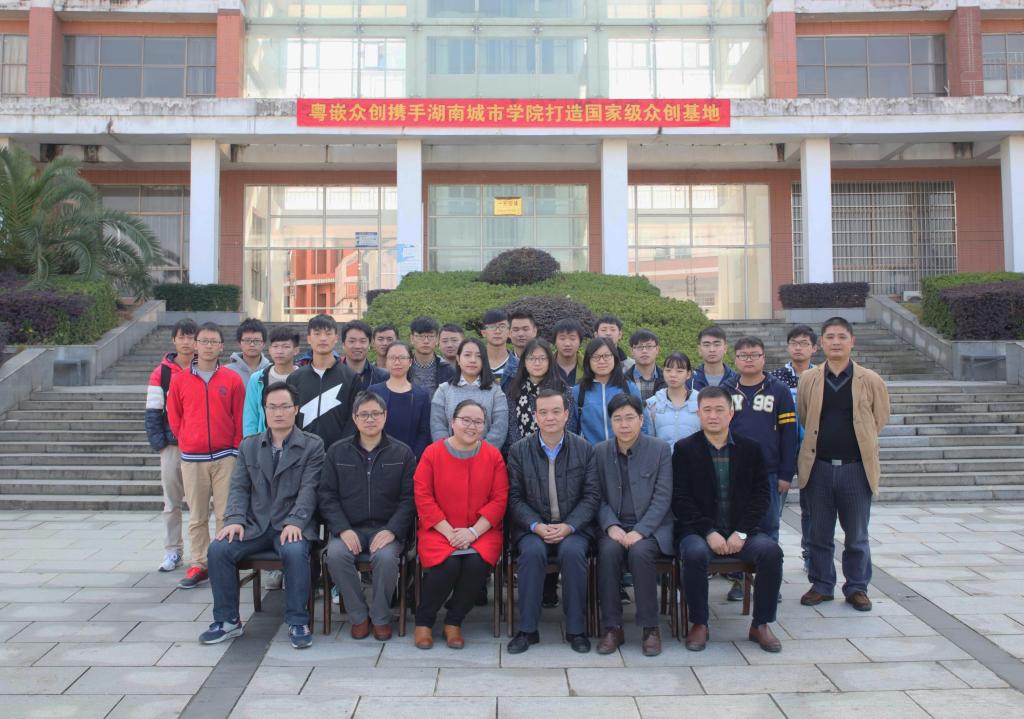 (本网讯)2016年11月11日上午10时,粤嵌众创携手米兰平台打造的国家级众创基地揭牌仪式在信息楼326会议室隆重举行。副校长雷存喜,教务处负责人,信息科学与工程学院党政班子成员,粤嵌股份湖南分公司总经理朱容、技术部总监周龙、运营总监常红英,信息科学与工程学院教师代表及学生代表参加了此次揭牌仪式。