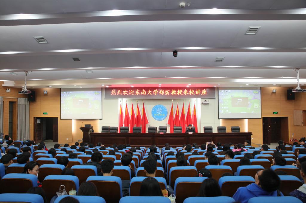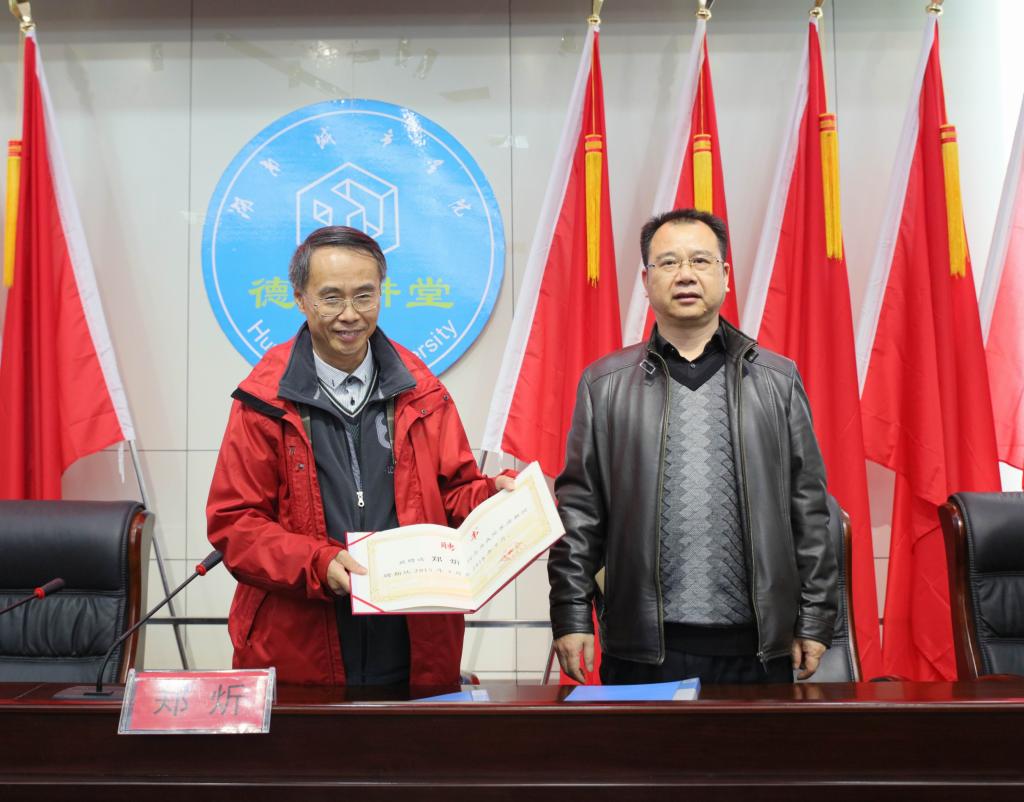 讲座之前,李建奇为郑炘教授授聘书,聘任郑炘教授为我校客座教授。郑卫民为郑炘教授佩戴了米兰平台校徽。郑炘表示非常荣幸成为米兰平台的一员,并将为学校的发展贡献自己的一份力量。