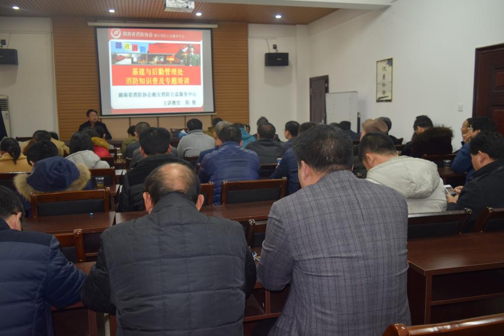 (本网讯)为了强化全体教职员工的消防安全意识,普及消防安全知识,12月29日下午,基建与后勤管理处邀请湖南省消防协会教官为教职工和托管公司员工举办了一场消防安全知识培训讲座。