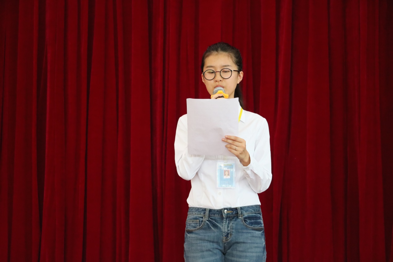 在嘹亮的团歌声中,开学典礼拉开序幕。团员代表陈嬿伊同学作了“严守团规,做好党的得力助手与后备军”的主题发言;800多名新团员在鲜艳的团旗下庄严宣誓。
