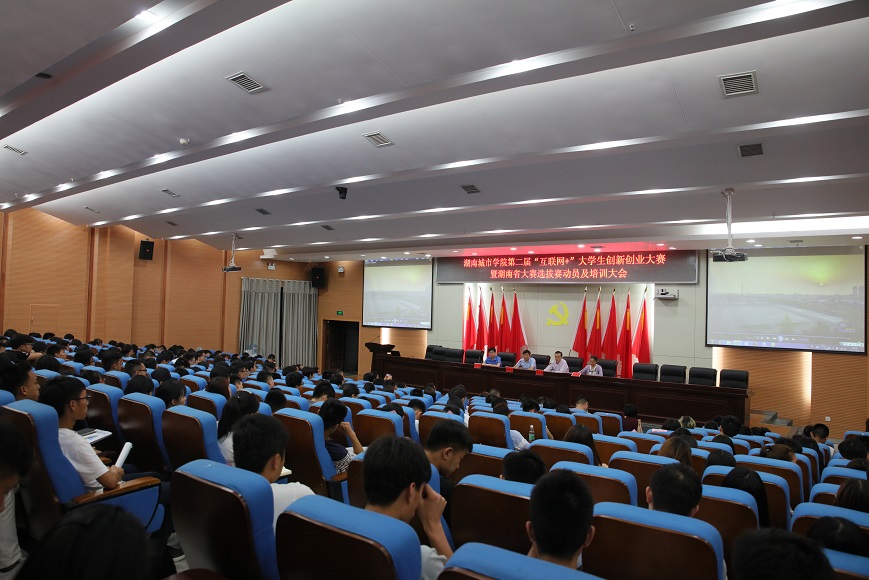 (本网讯)6月6日,学校在图书馆报告厅召开了米兰平台第二届“互联网+”大学生创新创业大赛暨湖南省大赛选拔赛动员及培训大会。副校长雷存喜、谭献良,教务处相关负责人、创新创业导师、团委、学生处、招生就业处、应用与创新创业学院负责人、二级学院负责学科竞赛副院长、负责学生工作副书记、各班班长、学习委员参加了会议。