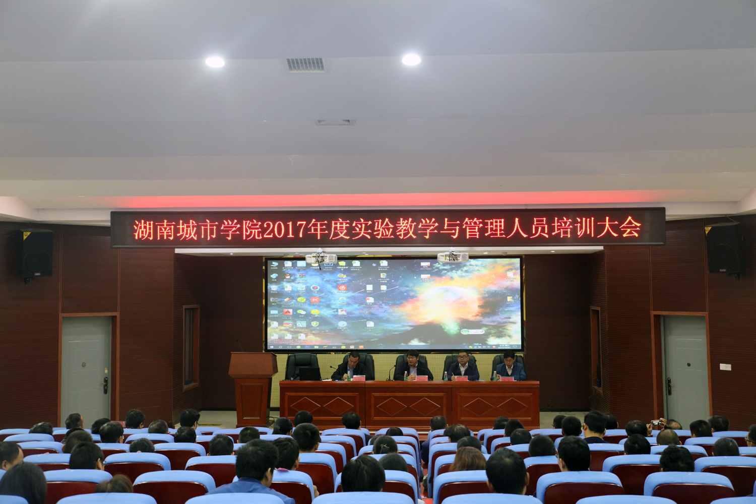 (本网讯)为了进一步加强和规范我校实验(训)中心(室)的建设与管理,提高实践教学水平,迎接本科教学工作审核评估,10月21日,学校举行全校实验室工作人员培训大会。党委书记罗成翼,副校长郑卫民、雷存喜出席会议。各二级学院副院长、实验室管理和教学人员等近100人参加培训。