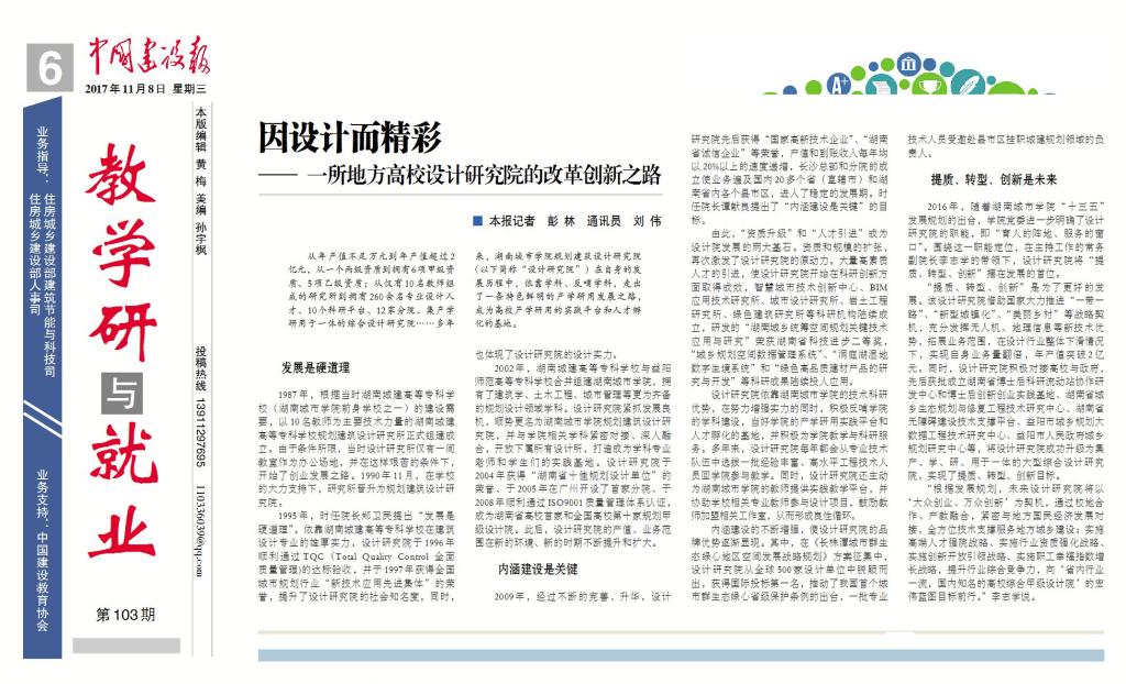 《中国建设报》11月8日报道我校规划建筑设计研究院改革发展成就