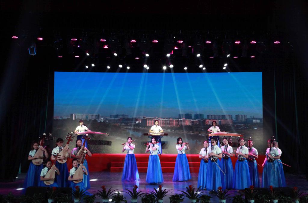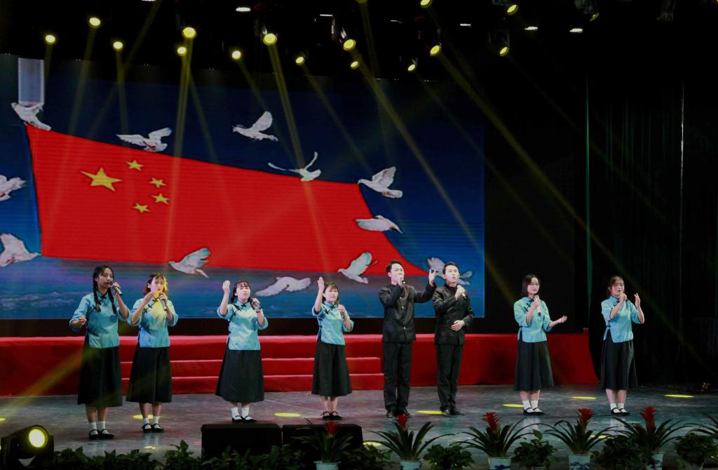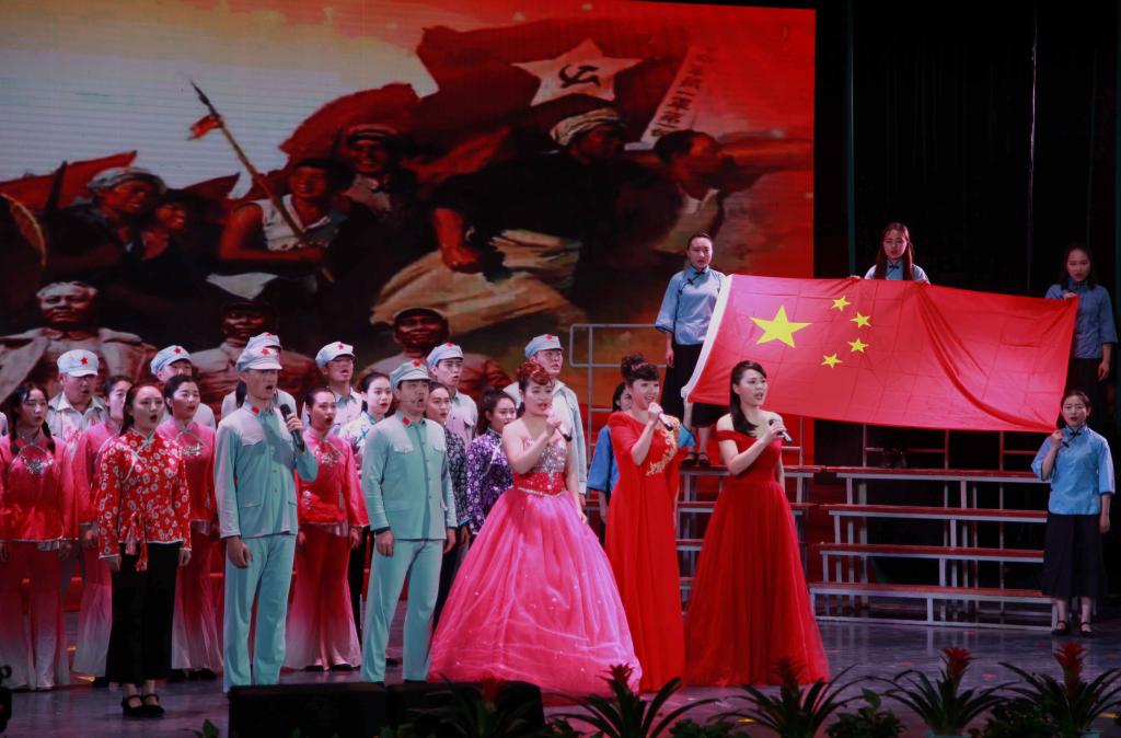 大红的舞台背景上,“不忘初心 继续前行”8个金色的大字熠熠生辉。台下灯光渐暗,喜庆而欢快的音乐声骤然响起,手持鲜艳大红绸的舞者尽情舞蹈,开场舞《东方红》拉开了晚会的序幕。红歌联唱《战斗青春 岁月芳华》,演绎了革命先烈不畏牺牲、浴血奋斗的战斗青春,诠释了中国共产党带领中国人民披荆斩棘走向光明与富强的光辉历程;张扬有力的军旅拳表演《荣光》彰显着我校军训学生教官的素质与风采;原创舞蹈《傩迹》,粗犷、豪放的男子群舞尽显湖南安化梅山傩文化的独特魅力;舞龙表演《大秦帝国之军魂》精彩的舞龙表演与舞蹈动作浑然天成、配合默契,赢得观众阵阵喝彩;戏曲联唱《梨园春曲》典雅精致的词句搭配悠扬委婉的唱腔,表现了中国人含蓄、稳健、精致、典雅的精神品格;阿卡贝拉演唱《彩云追月》轻柔婉转,沁人心脾;器乐表演《城院好风光》琴瑟和鸣、气势如虹,尽显米兰平台内涵建设、特色发展、“六破六立”推进改革的蓬勃生机;“祖国”是我们心中最神圣的词语,在大学生青春、高昂的朗诵《祖国啊,我亲爱的祖国》声中,显得那么美好与深情;《武术》表演技艺高超,激起观众的欢呼与惊叹;合唱《不忘初心》慷慨激昂,气势磅礴,催人奋进。