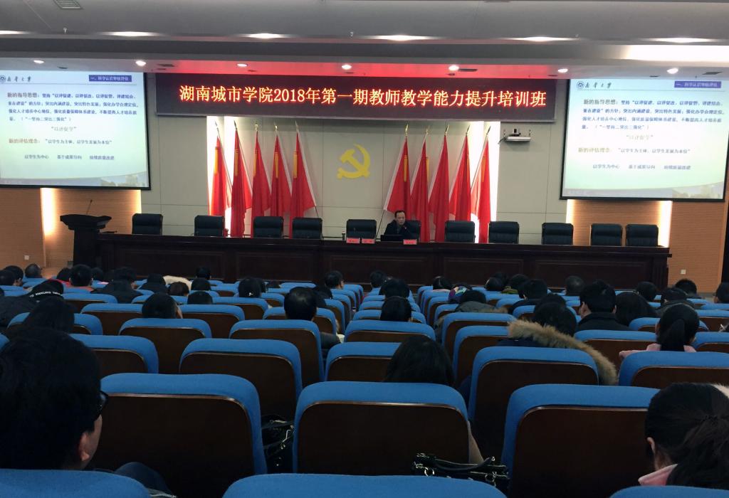 (本网讯)1月13日,学校举办了2018年第一期教师教学能力提升培训班,特邀湖南师范大学向玉乔教授、徐满才教授和南华大学龙双涟教授作相关培训报告。校长李建奇出席培训班并作重要讲话,我校200多名青年教师参加了培训。