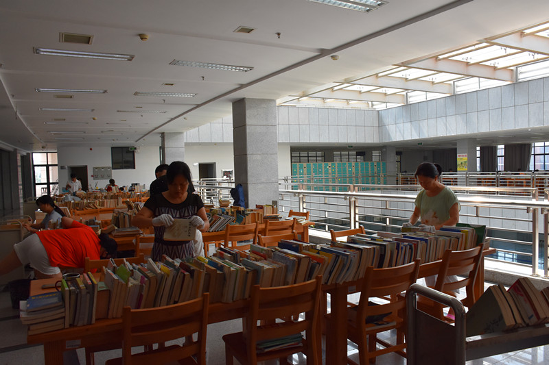 为提高图书利用率,进一步提升图书馆排架水平及整体服务质素,通过实地考察其他高校图书馆,对比自身特色,图书馆领导积极谋划,并经党政联席(扩大)会议决定,将10万余册原朝阳校区搬馆难以上架图书进行筛选并二次利用,以扩充图书在架量、美化图书馆环境,并对全馆近80万册图书重新整架排架。这项巨大的图书“迁徙”工程从7月6日正式开始,将于本月28日全部完成,耗时长达23天。