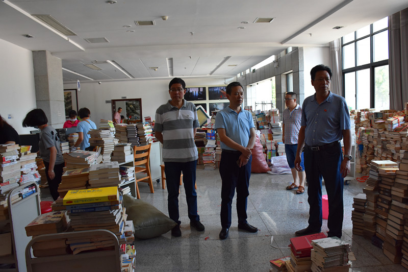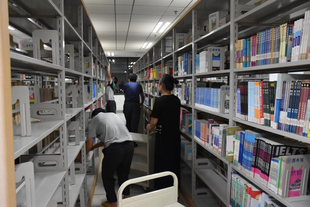 (本网讯)已是暑假第二天,天气仍酷暑难耐。在图书馆馆长陈国民、党总支书记黄晔等党员干部的带领下,图书馆全体员工继续奋战一线,对全馆近80万册图书进行转库倒库、整架排架扫尾工作。