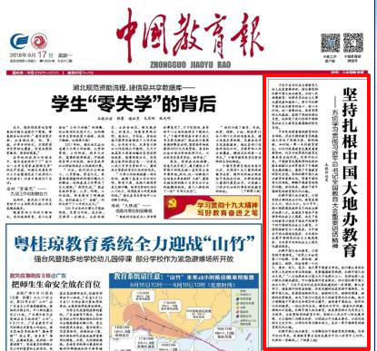 《中国教育报》9月17日刊发党委书记罗成翼撰写的评论员文章