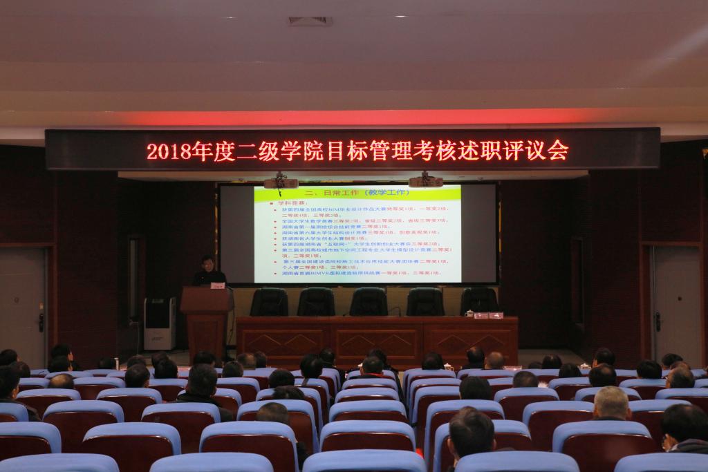 (本网讯)2019年1月3日至4日,我校2018年中层正职述职述廉会议在建规楼121报告厅召开。二级学院党委(党总支)书记、院长,机关、教辅单位主要负责人分别作了公开述职述廉。在家的校领导出席了会议。会议分别由学校党委副书记汤放华和纪委书记姚春梅主持。