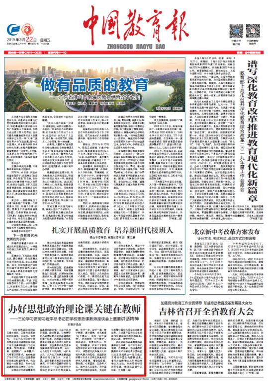 (本网讯)2019年3月22日,我校党委书记罗成翼受邀作为《中国教育报》评论员,就学习贯彻习近平总书记在学校思政课教师座谈会上重要讲话精神,发表评论。全文如下: