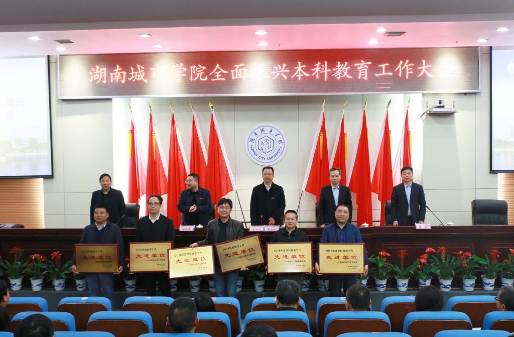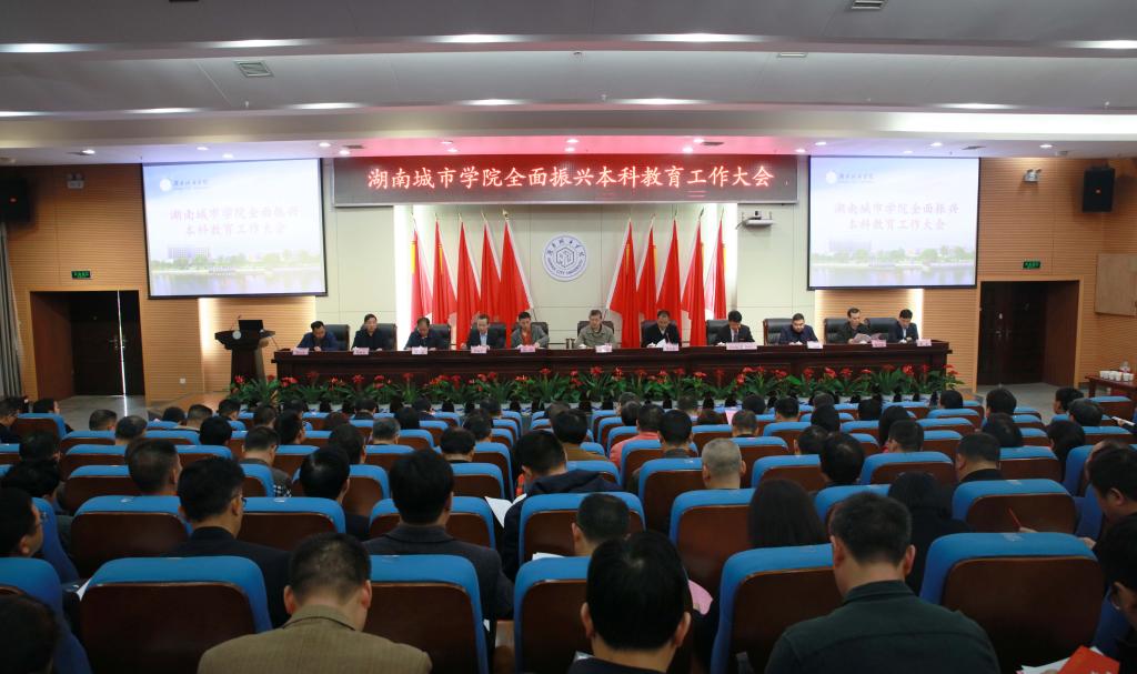 本网讯为进一步落实全国教育大会与新时代全国高等学校本科教育工作会议精神,全面提高学校本科教育水平和人才培养能力,研究部署本科人才培养工作,2019年4月12日,我校全面振兴本科教育工作大会在图书馆报告厅举行。在家校领导,副处级以上干部、督导团团长、教学科研办主任、系(室、中心)主任,教务处、教学质量监控与评估中心全体成员,全体辅导员二级学院教师及学生代表共270余人参加会议。会议由学校党委副书记汤放华主持。