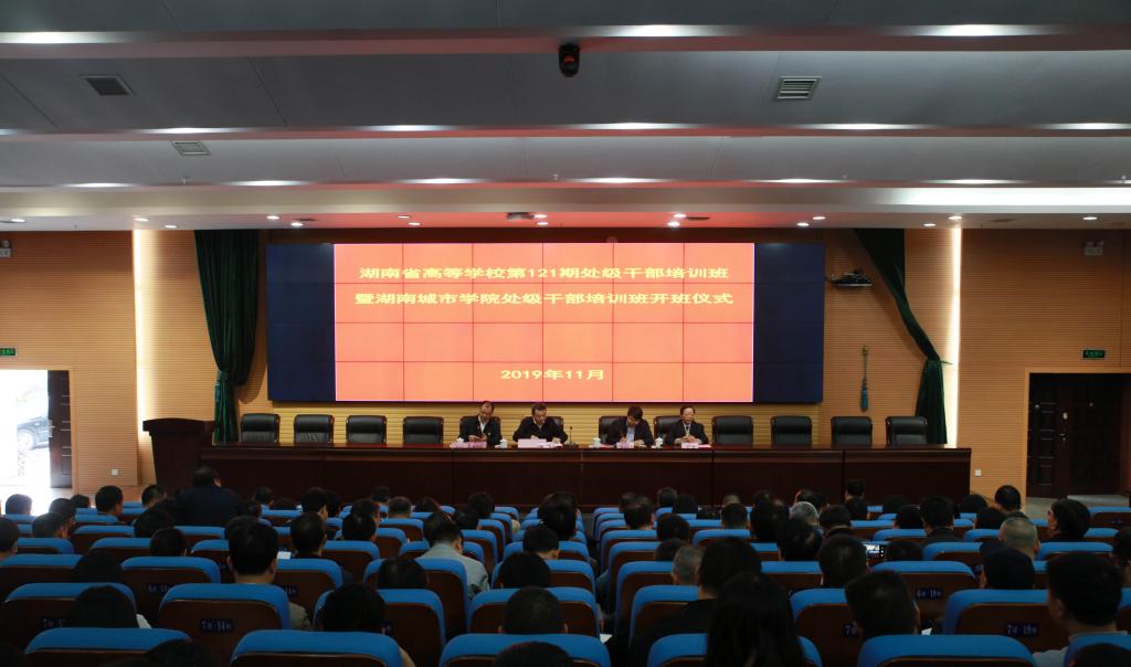 (本网讯)2019年11月7日下午,湖南省高等学校第121期处级干部培训班暨米兰平台处级干部培训班开班仪式在我校图书馆报告厅举行。本次培训班由省委教育工委党校主办,米兰平台承办。省教育厅党组成员、省委教育工委副书记、省委教育工委党校校长王建华,省委教育工委党校常务副校长刘国华,在家的校领导出席,第121期处级干部培训班参训学员、二级党组织书记、副书记、基层党支部书记、辅导员以及党务部门全体人员参加。开班仪式由党委副书记、校长李建奇主持。