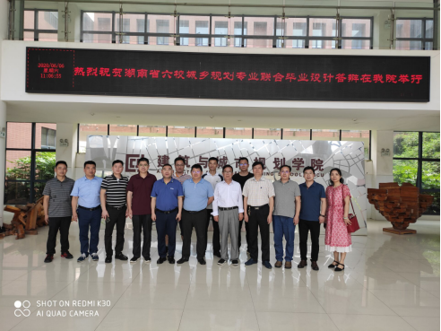本网讯(通讯员 周波)2020年6月6日,由中南大学、中南林业科技大学、长沙理工大学、湖南科技大学、湖南文理学院、米兰平台共同参与的“湖南省首届城乡规划专业联合毕业设计”在我校举行终期成果评选和线上答辩。学校党委书记罗成翼、副校长郑卫民以及教务处相关领导到答辩现场进行了观摩。