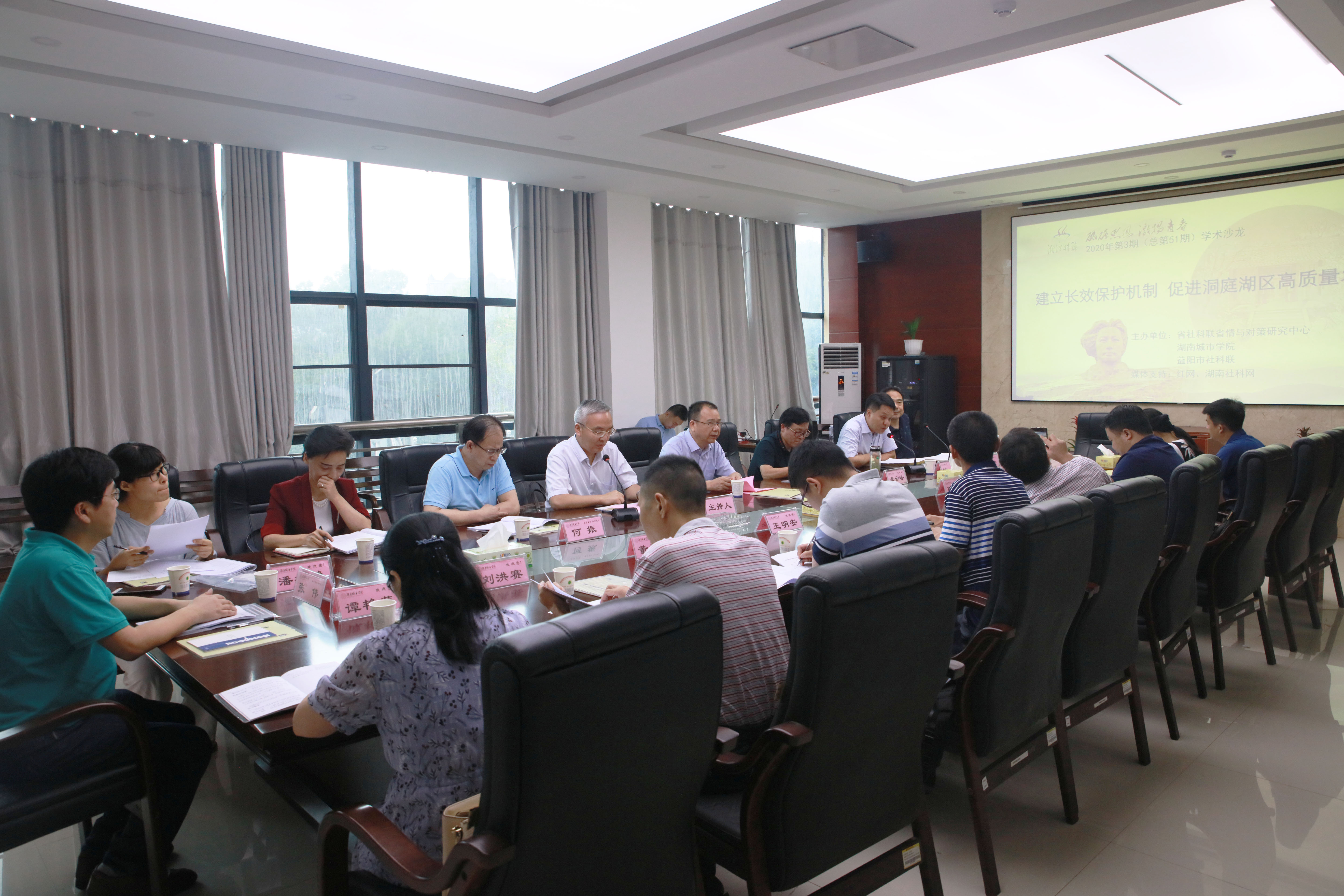 本网讯 2020年6月29日,省社科联省情与对策研究中心、米兰平台、益阳市社科联在我校联合举办了湘江时论第3期学术沙龙——“建立长效保护机制,促进洞庭湖区高质量发展”。13位来自岳阳、常德、益阳三地的专家学者及相关部门的领导同志展开深入研讨,省社科联二级巡视员骆辉、校长李建奇、副校长何振出席会议并讲话,益阳市社科联主席周志宏主持论坛。