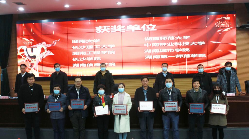 教育技术专业委员会秘书长罗明作了2020年专业委员会工作总结及2021年工作设想,教育技术专业委员会理事长、湖南师范大学原副校长黎大志宣读了2020年湖南省高校教师信息化教学竞赛获奖教师及优秀组织单位名单。与会领导为获奖人员、单位进行了颁奖。