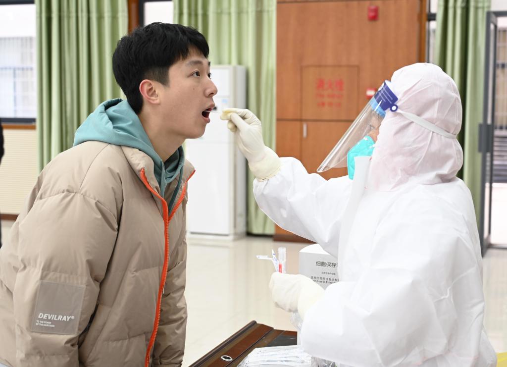 为进一步筑牢校园疫情防控安全防线,确保广大师生的生命安全和身体健康,我校于3月23日组织全体师生员工开展了本学期第2次免费新冠病毒核酸检测。在工作人员和志愿者的引导下,师生们均佩戴口罩,间隔1米有序排队候检,在身穿全套防护装备的医护人员指导下完成了信息核对、咽拭子采集等流程。整个流程操作规范、防护到位、安全严谨。