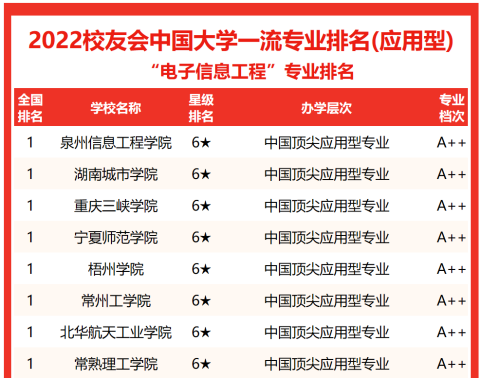 本网讯(通讯员 蒋冬初 肖卫初 李稳国)2022年3月30日,全国第三方大学评价机构艾瑞深校友会网发布校友会2022中国大学一流专业排名、2022中国大学各专业类一流专业排名。榜单显示,我校电子信息工程专业在2022中国大学电子信息工程专业排名(应用型)中位居榜首。