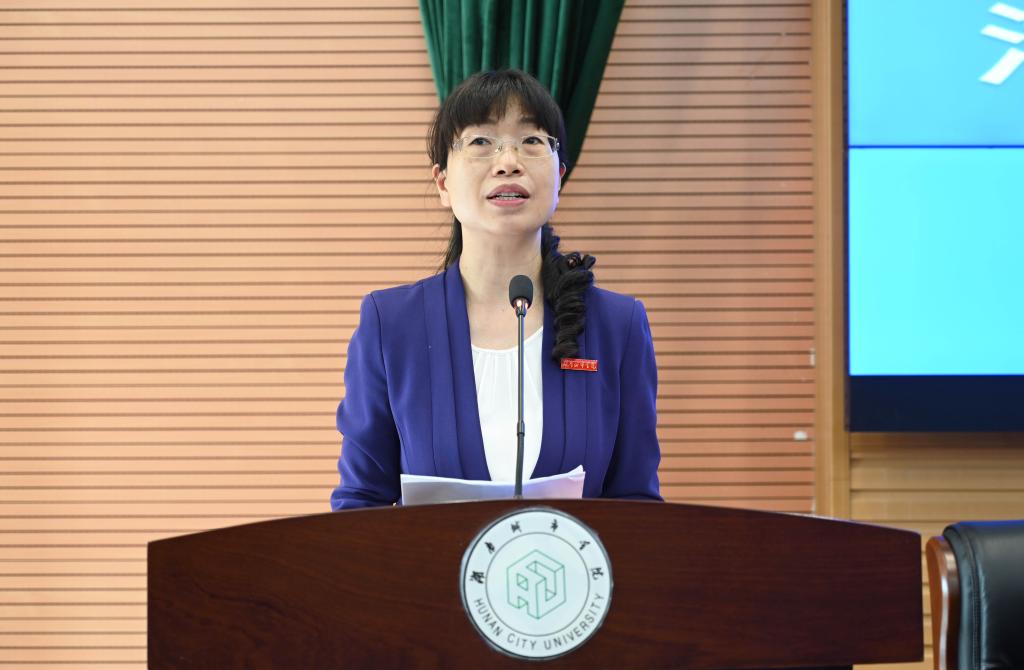 会议在雄壮的国歌声中拉开帷幕。高新明代表省教育工会向大会的召开表示热烈的祝贺,向出席本次大会的全体代表及辛勤工作在教学、科研、管理、服务一线的广大教职工致以诚挚的问候和崇高的敬意!他指出,学校紧扣立德树人根本任务,创新人才培养模式、加强专业内涵建设,坚持产学研用结合,学校综合实力明显提升,社会影响力显著增强,高水平通过教育部本科教学工作审核评估,跻身湖南省“高水平应用特色学院”行列,实现了一本招生和获批新增硕士学位授予单位。他对新一届工会委员会提出三点希望:一是提高政治站位,强化思想政治引领;二是助力教师队伍建设,助推学校改革发展;三是加强服务能力建设,竭诚服务教职工。