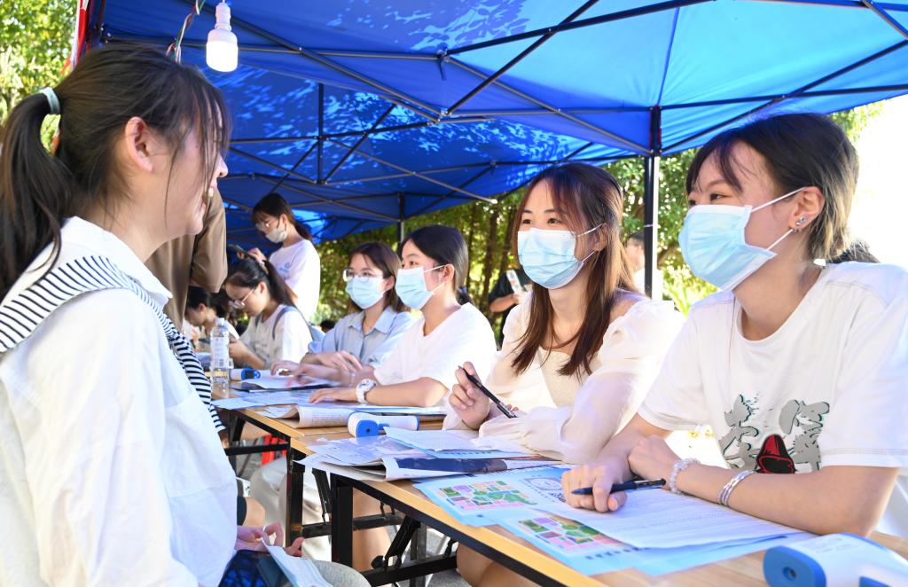 考虑到部分外省学生提前来校的情况,从9月3日下午开始,各二级学院及部分职能处室的工作人员便在迎新现场“严阵以待”,为早到的新生提供贴心周到的“一站式”服务。作为最早来校的20名新生之一,来自江西的大男孩郭定虎对此深有体会,“9月3日一大早我就兴奋地从家出发了,但临到学校却又有几分忐忑:迎新点不会没人办理报到手续吧?来到学校后,首先映入眼帘的便是学长学姐们热情的笑脸,他们争相帮我提行李,带我快速办完入学手续,让我体验到不一样的优待。”