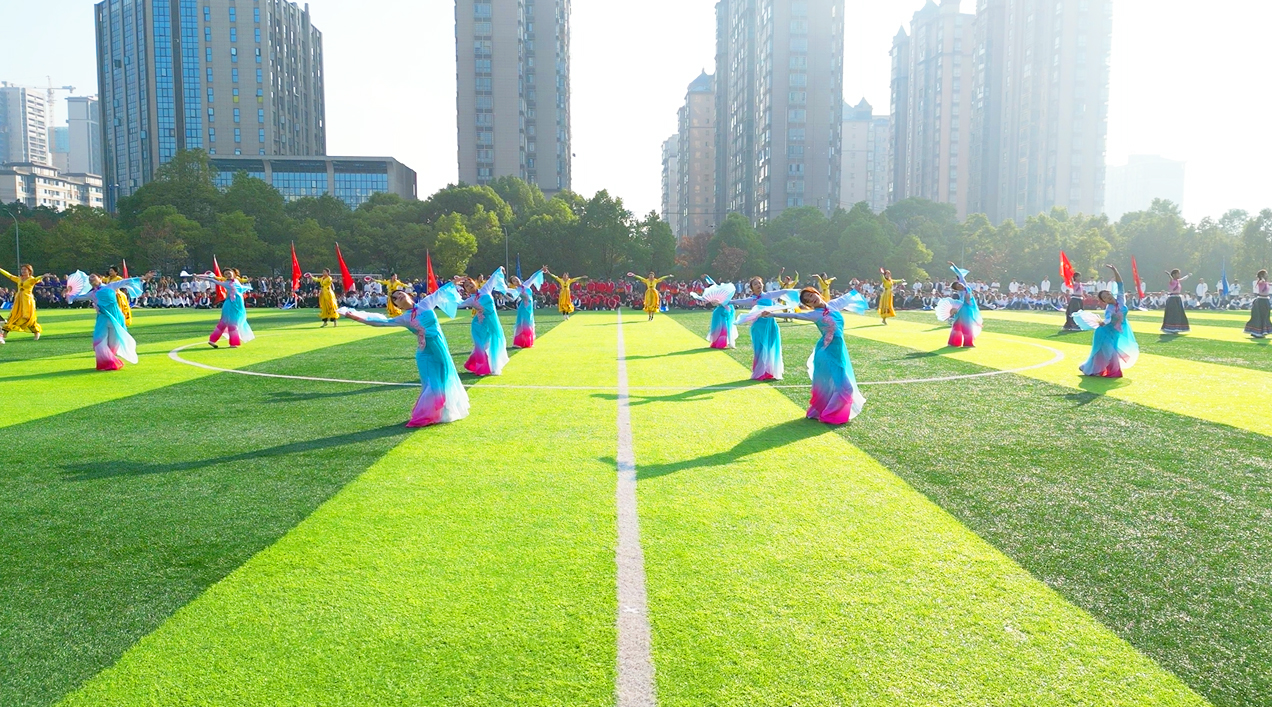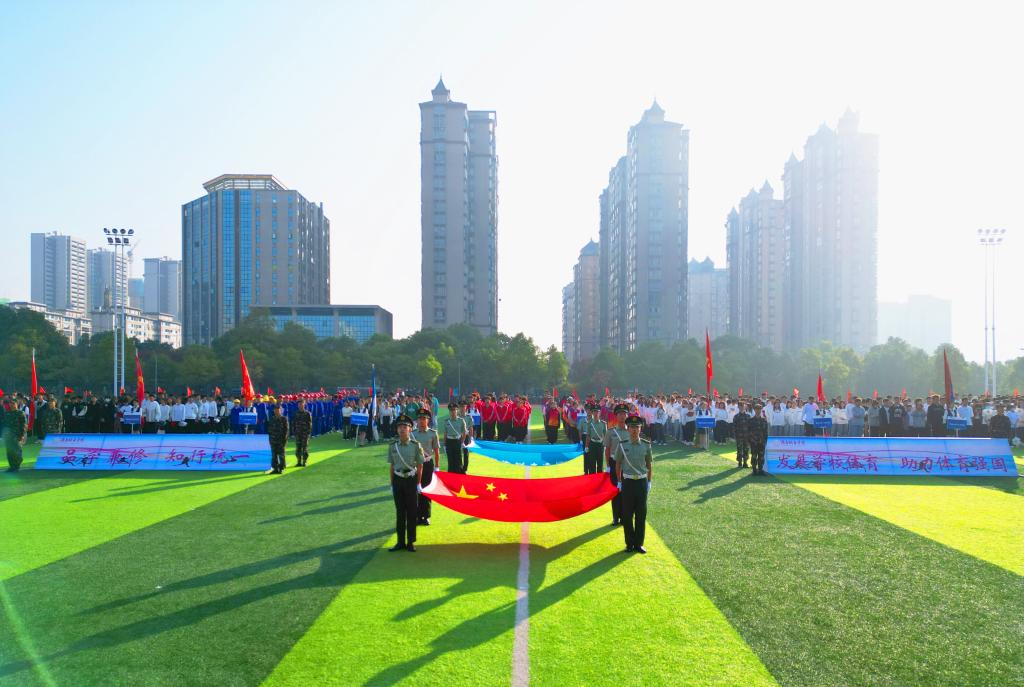 随后,四位旗手手执鲜艳的五星红旗带领校旗方阵、校训方阵、红旗方阵、裁判员方阵、志愿者方阵,伴随着激昂的运动员进行曲依次入场,14个二级学院代表方阵先后表演了热情似火、节奏明快的节目,以不同的形式展现青春风采,为全校师生带来朝气蓬勃的视觉盛宴。