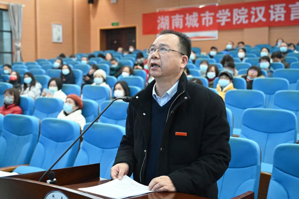 反馈会上,唐贤清代表专家组对考查情况作了总体反馈。专家组充分肯定了我校师范专业建设好的做法和成效,并对考查过程中发现的问题和不足提出了意见和建议。汉语言专业负责人作了表态发言。