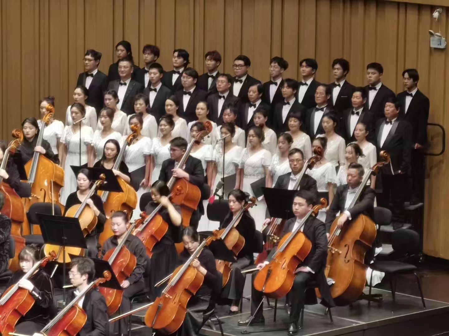 本场首演音乐会由湖南省文联主办,湖南省音乐家协会承办,国家一级演员吴碧霞、薛皓垠、耿哲等众多音乐大伽参加演出。我校澄音合唱团作为唯一一支地方高校团队受邀参演,圆满完成了演出任务,展现了较高的艺术素养。