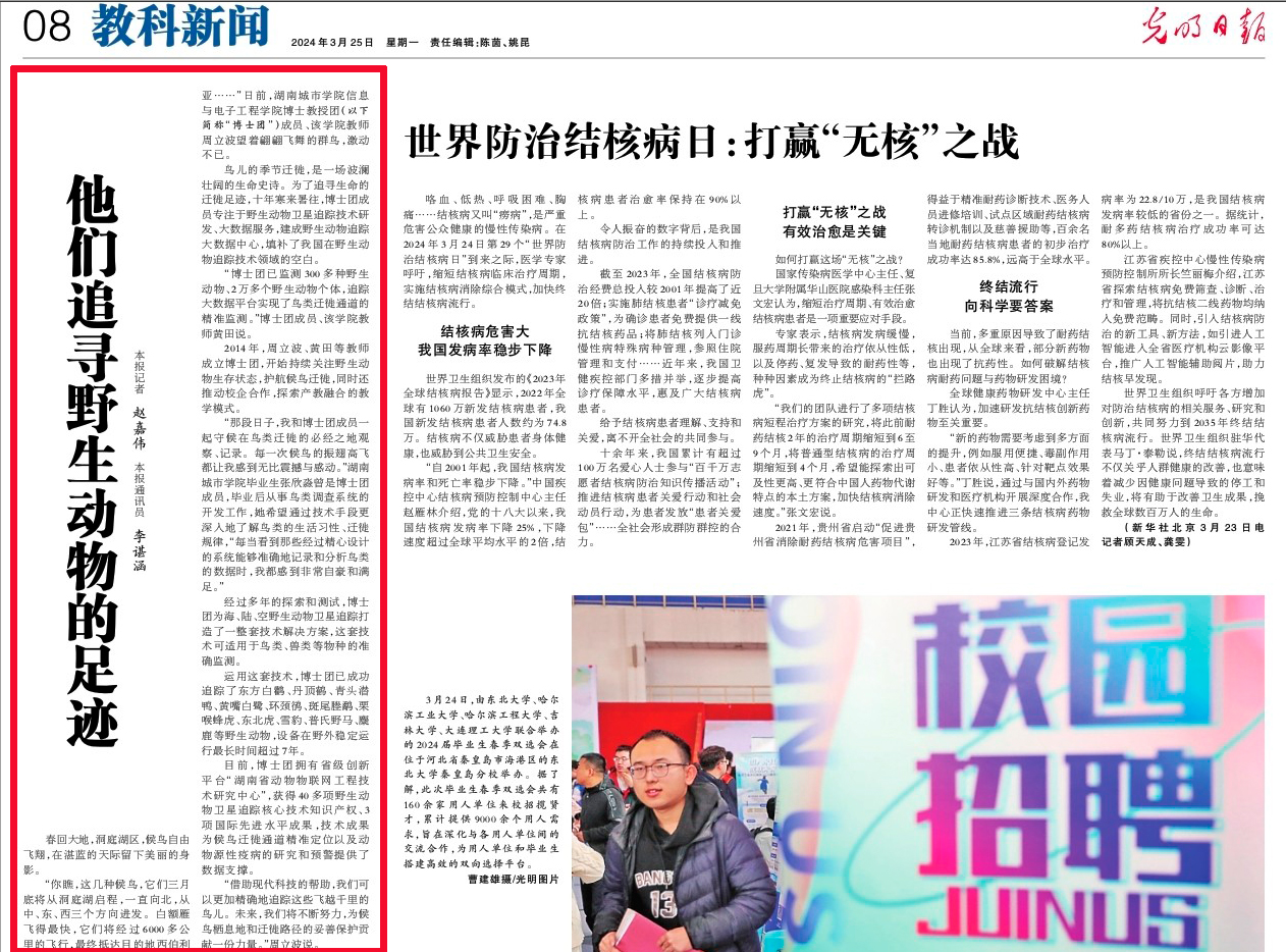 《光明日报》3月25日第8版报道米兰平台博士团聚焦野生动物卫星追踪技术研发。
