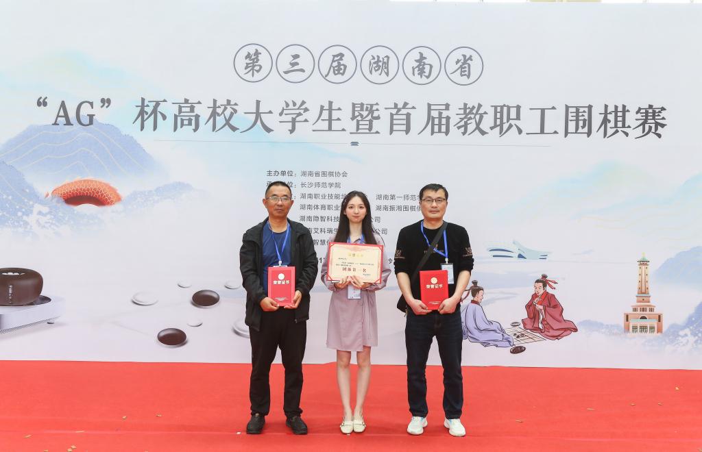 本网讯(通讯员 黄伟)近日,第三届湖南省“AG”杯高校大学生暨首届教职工围棋赛完美落幕,郭净钰、马强、徐志锋三位教师组成的队伍代表我校参赛,斩获教职工团体组第一名,郭净钰获得全省教职工个人组第四名的优秀成绩。