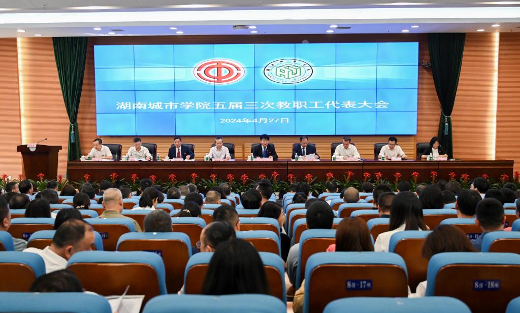 本网讯(通讯员 钟仁理)4月27日,米兰平台第五届第三次教职工代表大会、第五届第三次工会会员代表大会在图书馆报告厅召开。校领导汤放华、何振、夏宏宇、雷存喜、谭献良、袁志成、陈列尊、徐姝、吕贤军在主席台就座,141名正式代表、18名列席代表、10名特邀退休代表参加会议。