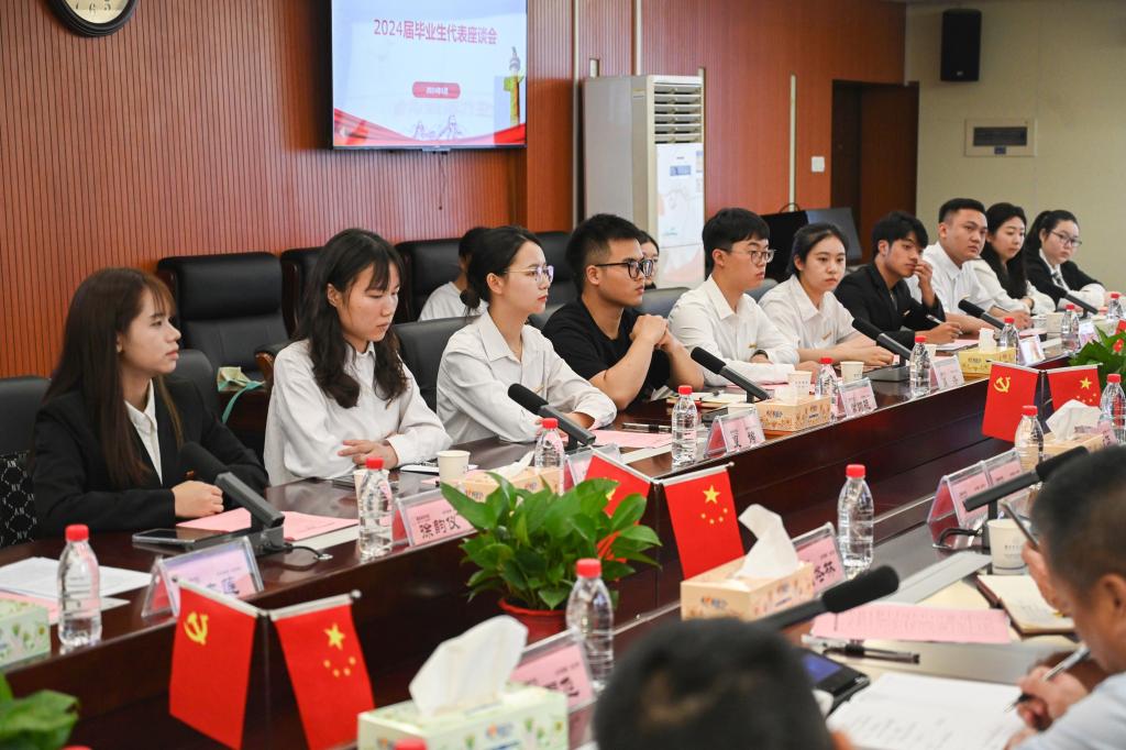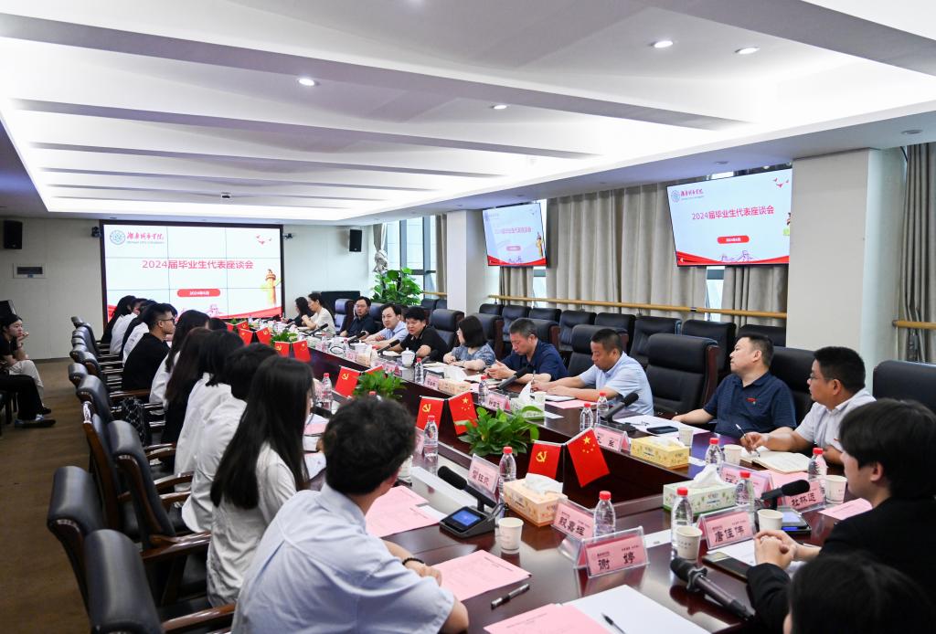 本网讯(通讯员 李星冉 何昱郴)“‘迎宾东路518号’的城院大门永远为大家敞开,欢迎常回家看看。”6月12日上午,党委书记汤放华,副校长徐姝与2024届14名毕业生代表相聚一堂、共叙情谊、共话成长。会议由徐姝主持。