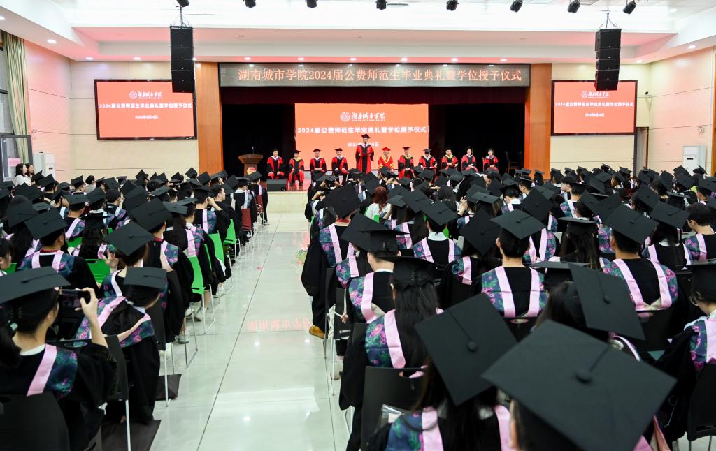 学生工作部、教务处、团委负责人,人文学院、理学院、教师教育学院书记、院长、副书记、公费师范生毕业班辅导员及毕业生500余人参加典礼。