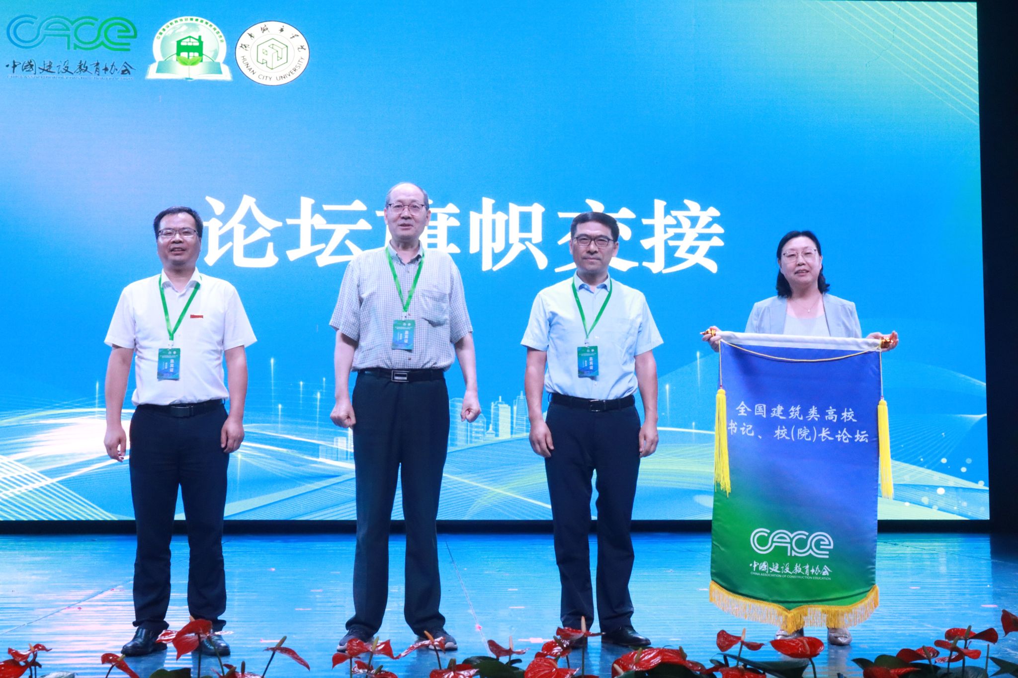 在闭幕式阶段,米兰平台党委副书记袁志成、中国建设教育协会副理事长高延伟、中国建设教育协会普通高等教育工作委员会秘书长陈红兵和下一届承办单位青岛理工大学党委常委、副校长岳丽宏进行了会旗交接。
