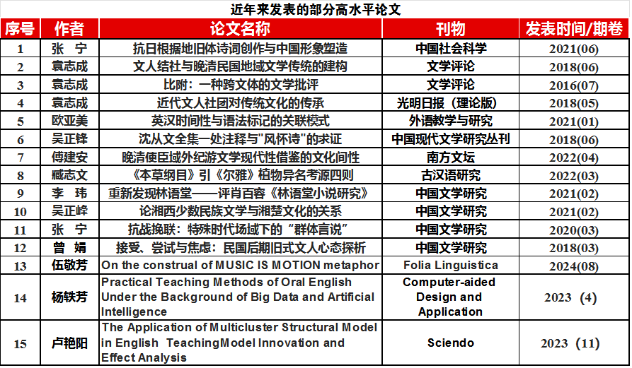 学院教师围绕近现代旧体诗词、方言与传统文化的域外传播等学科方向,传承传统文化,科研成果丰硕,主持立项国家级课题7项,获湖南省社科成果一等奖和二等奖各1项;在《中国社会科学》《文学评论》《光明日报(理论版)》等期刊上发表高水平文章28篇,获批国家级和省级科研平台7个。