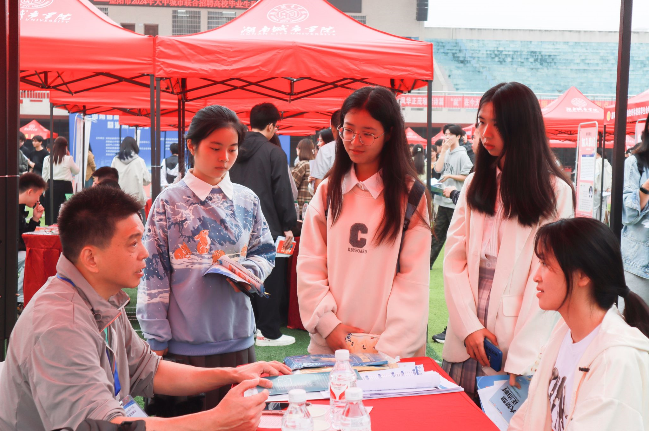 本网讯(通讯员 朱怡 冷紫怡)10月17日,湖南省高校毕业生就业区域性行业性常设市场(益阳片区)暨米兰平台2025届毕业生秋季综合双选会在东田径场举行。校长何振、党委副书记袁志成来到现场指导就业工作。