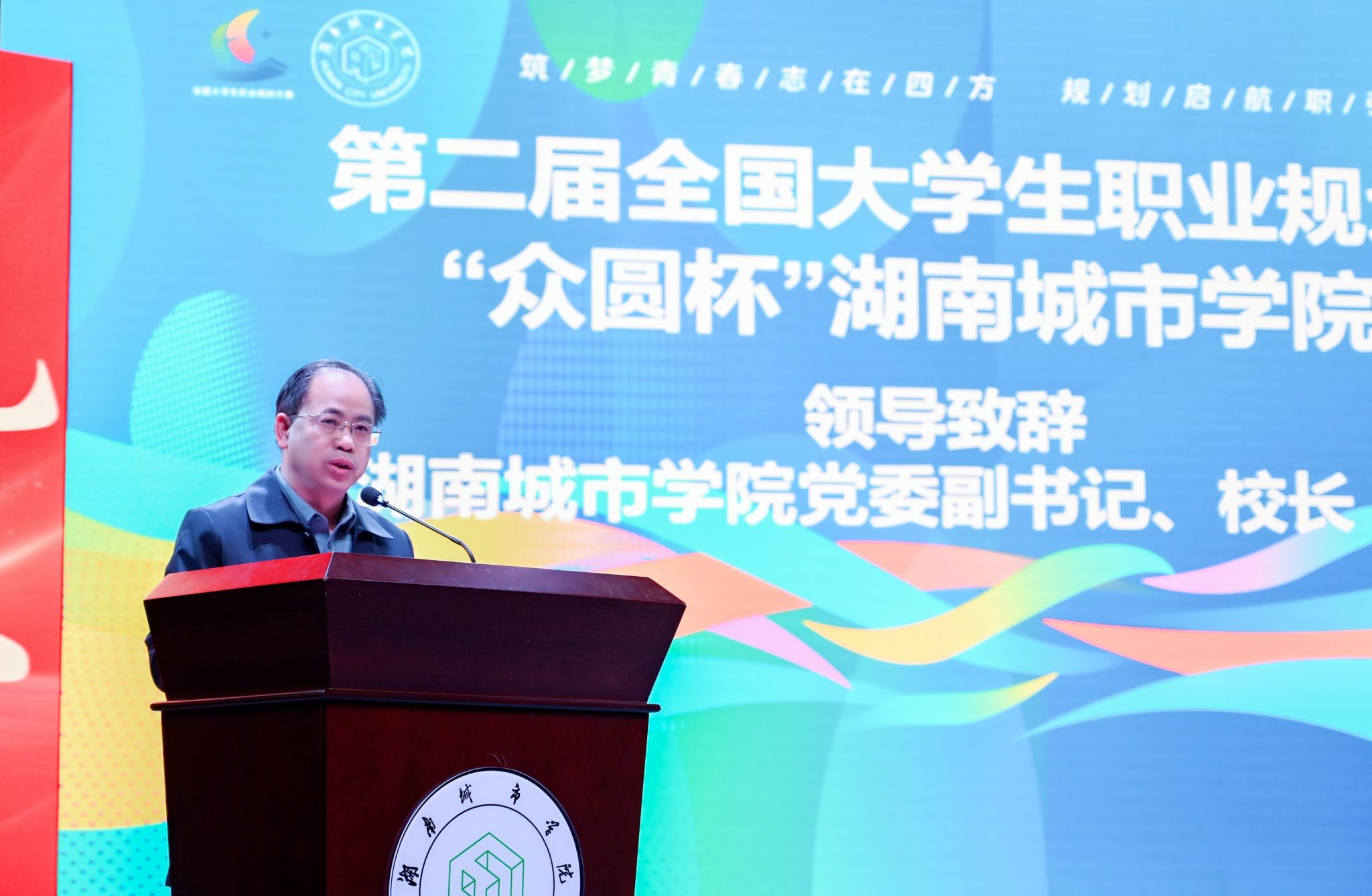 何振在致辞中表示,职业规划是每一位大学生必须面对的重要课题,脱颖而出的15位选手,历经层层选拔,展现了城院学子良好风采。站在决赛的舞台上,要赛出独到眼光。主动感受时代的脉搏,善于发现新兴领域,敢于树立新就业取向。要赛出家国情怀。把个人的理想追求融入党和国家事业之中,到国家需要的地方建功立业。要赛出实战效果。比赛的哨声就是集结号和冲锋号,检验的是就业创业“真功夫”,同学们要“火力全开”,力争进省赛、国赛。