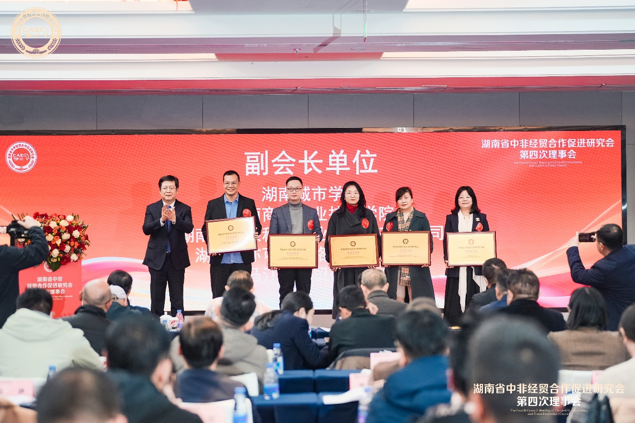 会上,我校作为新晋副会长单位接受授牌,并荣获2024年度湖南中非经贸合作研究促进工作“十佳单位”。
