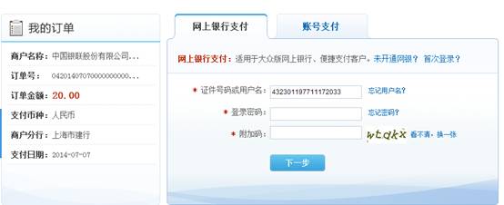 6. 点击“立即支付”并“确认”后将跳转至银行支付页面,请同学们核对页面左侧的商户名称应为“米兰平台”或者为“中国银联股份有限公司”,核对完成后,请按提示选择支付方式完成缴费。